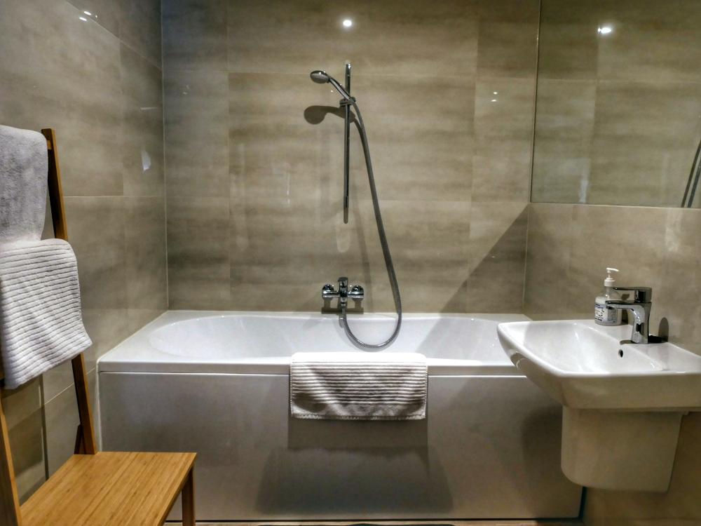 Tusoló/kád, WC, törölköző tartó, tükör, hajszárító, folyékony szappan tartó