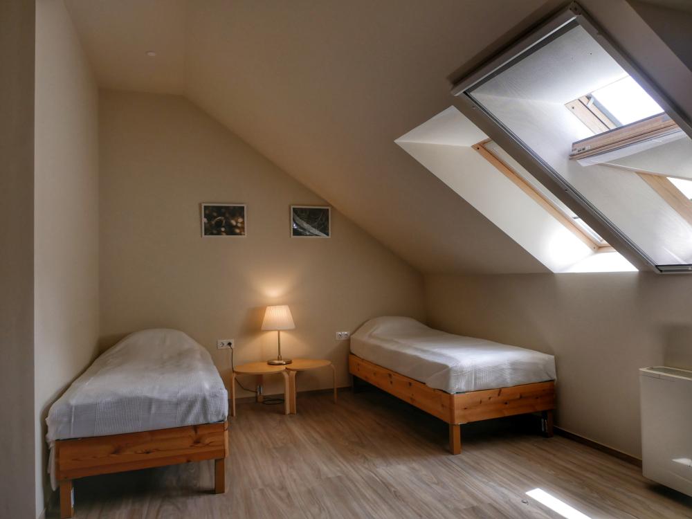 Az emeleti szobák alábbi eszközöket/felszereléseket tartalmazzák: hűtő/fűtő klíma, 2 db egyszemélyes ágy vagy 1 db franciaágy, 1 db